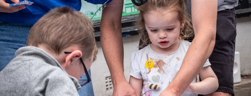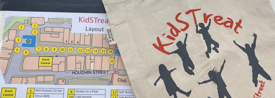 The High Street was closed on 6th July and turned into a "kids’ zone". The town centre came alive with activities for children, learning to do something, making something, participating in music or performing arts, being entertained, or competing.